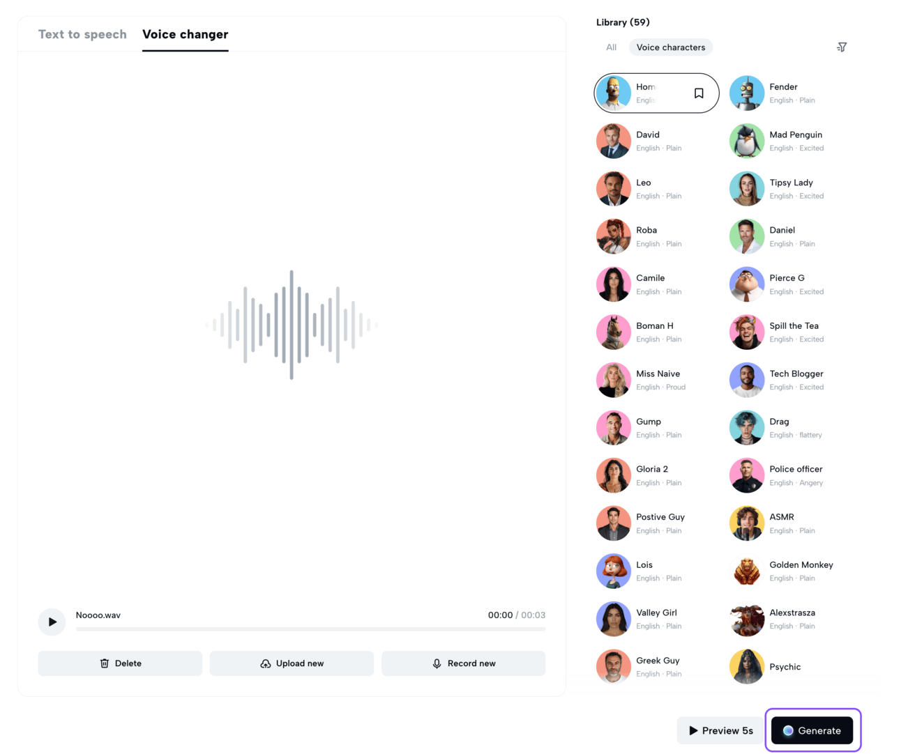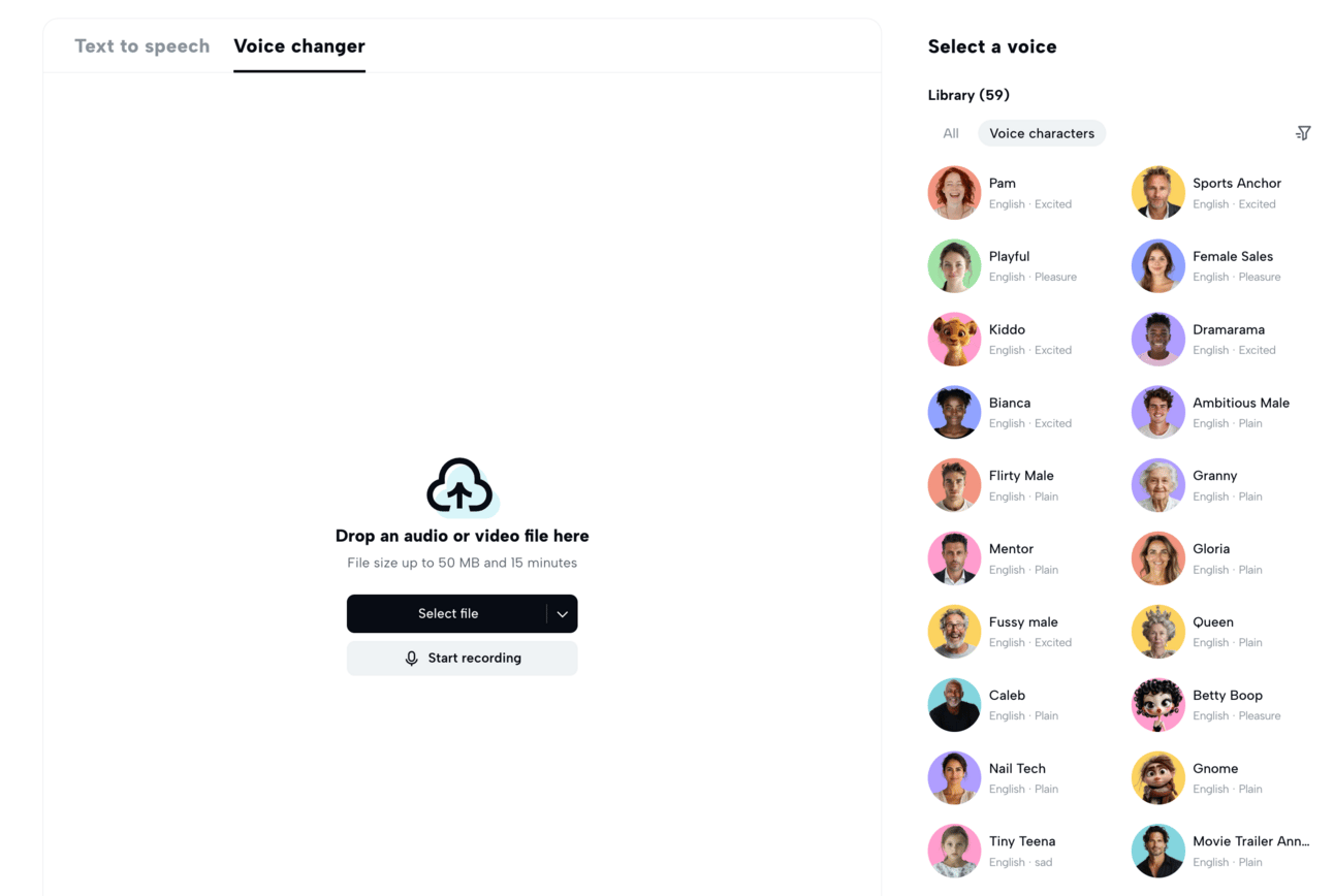 While TTS helps you skip recording entirely, Voice Changer lets you get creative with audio you've already recorded.