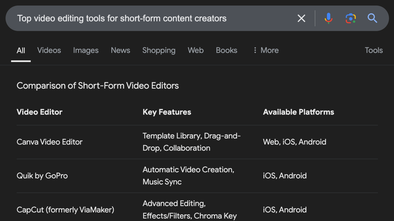 The quality of information here saves time by providing tool-specific benefits relevant to short-form video, meaning we don’t have to dig around for more details.