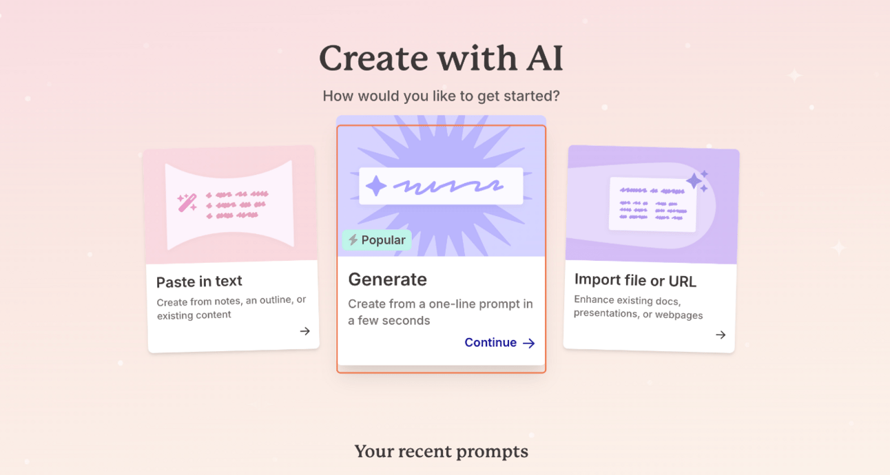 Gamma gives you options, but for this guide, we’re going straight for the “Generate” option in the middle.